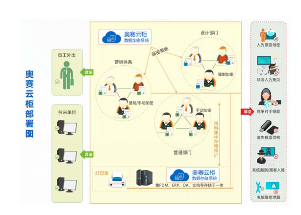 奧賽數(shù)據(jù)管理以數(shù)據(jù)加密和權(quán)限管理為核心,結(jié)合身份認(rèn)證、日志審計(jì)、文檔備份、外發(fā)管理等功能以及系統(tǒng)本身的容災(zāi)管理和多樣化安全策略,實(shí)現(xiàn)數(shù)據(jù)資料多元化管理。