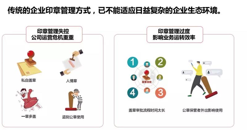 智能化的推進(jìn)所帶來的是數(shù)字化的共享,制造業(yè)都在做智能轉(zhuǎn)型,企事業(yè)單位傳統(tǒng)印章管理模式也可以帶來改變。傳統(tǒng)印章中存在的印章管理失控,使公司運(yùn)營困難重重;印章管理過度又會(huì)影響業(yè)務(wù)運(yùn)轉(zhuǎn)的效率。智能印章管理,不僅僅是要管動(dòng)作,還需要管內(nèi)容流程。