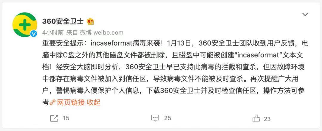 incaseformat病毒危害有多大呢?
