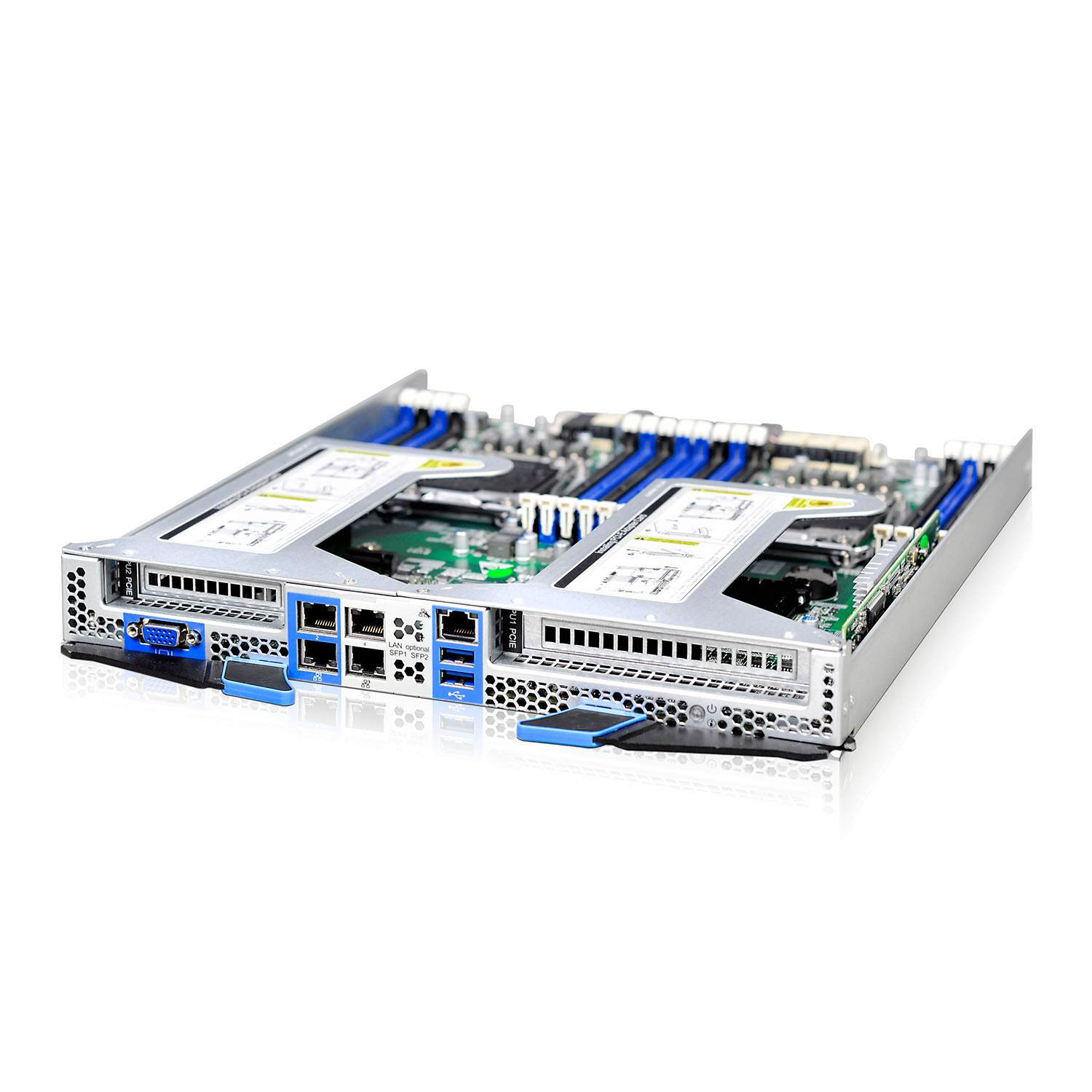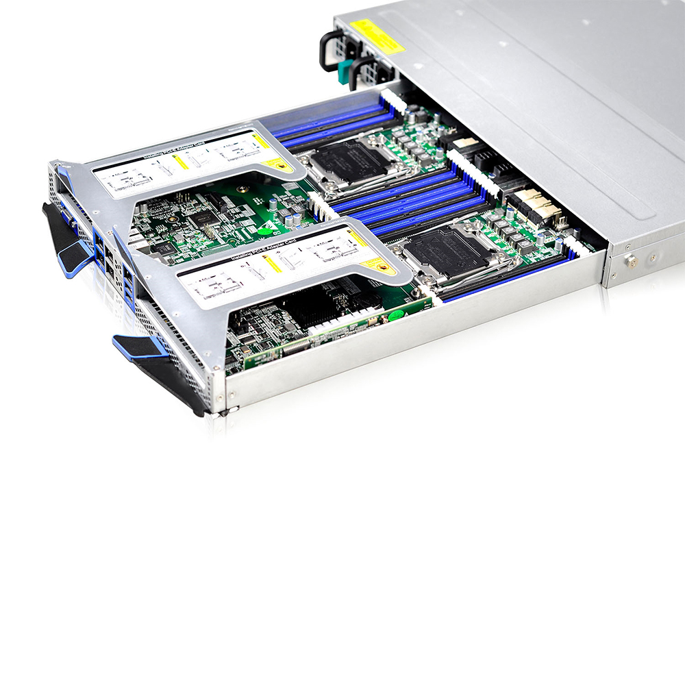在標(biāo)準(zhǔn)4U機(jī)架高度里部署1個(gè)雙路控制器,采用2顆并行排列的Intel? Xeon? E5-2600 V3/V4系列處理器,搭配1個(gè)內(nèi)置高速M(fèi).2 PCIE SSD。整機(jī)性能較傳統(tǒng)4U機(jī)架服務(wù)器系統(tǒng)提升數(shù)倍,適用于虛擬化桌面、大規(guī)模圖形渲染、云平臺(tái)等對空間、性能要求較高的大規(guī)模網(wǎng)絡(luò)應(yīng)用環(huán)境。