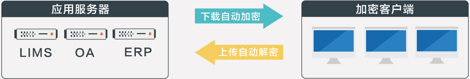 ▲ 無縫集成公司OA、LIMS、ERP等應用系統(tǒng),實現(xiàn)密文件上傳解密、下載加密碼。