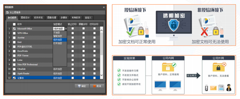 奧賽云柜的數(shù)據(jù)加密與解密可采用多樣化的靈活策略,可針對指定文檔格式進(jìn)行加密。解密外發(fā)可設(shè)置郵箱白名單(發(fā)送者白名單、接收者白名單),提高辦公對接效率。并可以通過手機(jī)App進(jìn)行在線查閱及解密,降低管理難度。