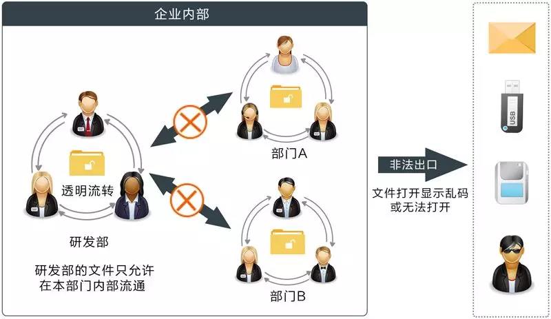 奧賽云盾采用驅(qū)動(dòng)層加密技術(shù),進(jìn)行文件加密,不改變員工操作習(xí)慣、不改變文件格式、不封閉公司網(wǎng)絡(luò)、不封閉外設(shè)端口,內(nèi)部流通自由正常。 加密文件在未授權(quán)的情況下脫離企業(yè)網(wǎng)絡(luò),文件就無(wú)法正常訪問(wèn),形成“對(duì)外受阻,對(duì)內(nèi)無(wú)礙”局面!有效保障企業(yè)的數(shù)據(jù)安全。