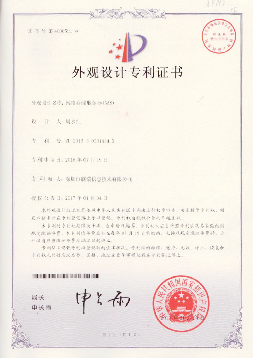?????? 上述外觀設(shè)計(jì)專利產(chǎn)品用于網(wǎng)絡(luò)存儲設(shè)備,目前已在公司生產(chǎn)的硬盤陣列柜和網(wǎng)絡(luò)存儲設(shè)備等產(chǎn)品中。在實(shí)際運(yùn)用中具有一定的美觀性、通用性和實(shí)用性,且通過優(yōu)化合理設(shè)計(jì)使生產(chǎn)成本得到有效降低。