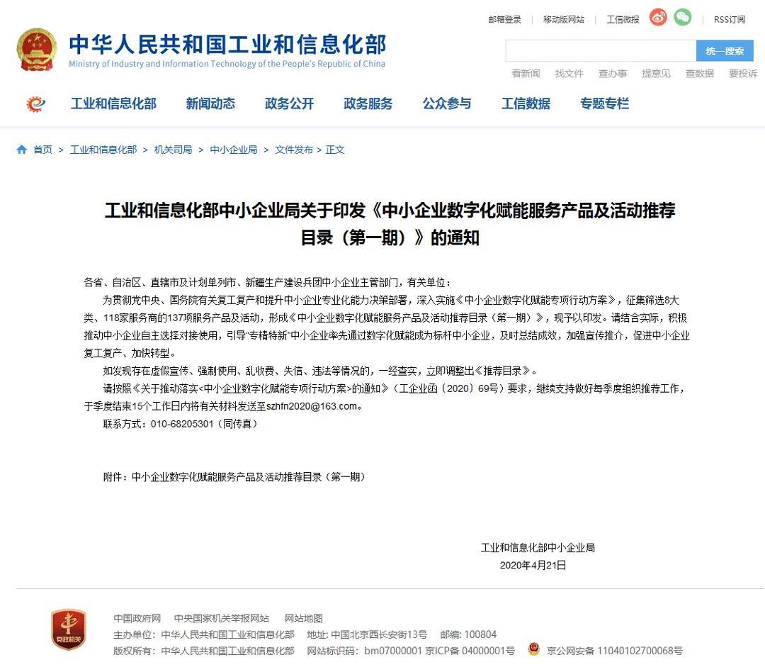 “中小企業(yè)數(shù)字化賦能服務(wù)產(chǎn)品推薦目錄”