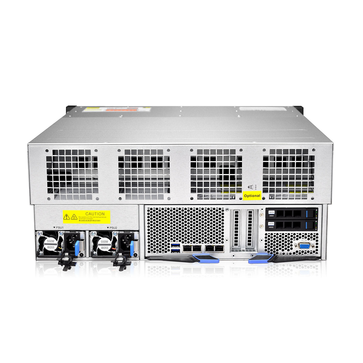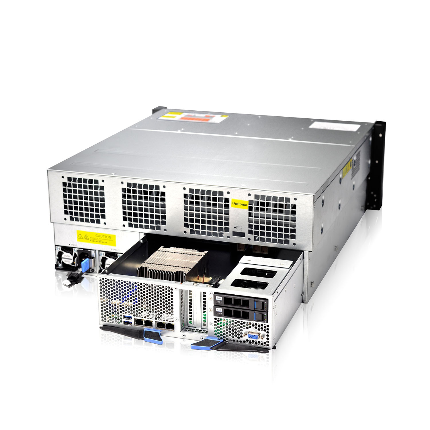控制器模組支持2個PCI-E x8擴(kuò)展槽位和2個2.5“SATA熱插拔硬盤位(4U24盤位);擴(kuò)展卡位置可支持萬兆網(wǎng)卡、小功耗GPU等各種擴(kuò)展設(shè)備。